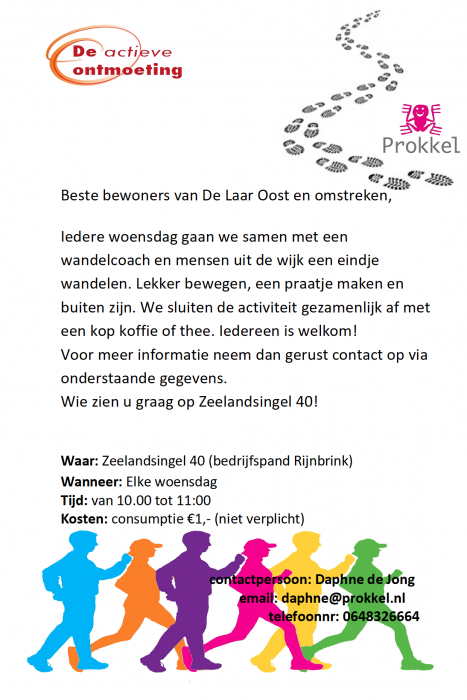 Iedere woensdag gaan we samen met een wandelcoach en mensen uit de wijk een eindje wandelen.